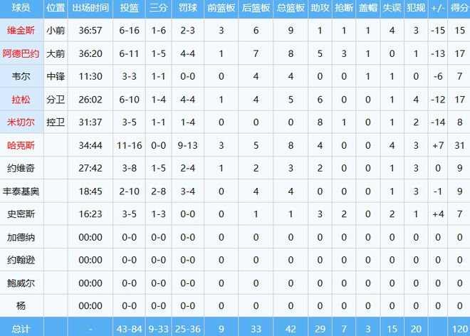 热火全队数据如下: